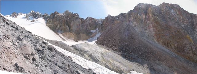 The Timberline eruption started with the formation of a lava dome at Mount Hood’s summit – near the present location of Crater Rock. However the really notable thing about that eruption is that at some point a very big collapse event also occurred – basically the southern third or so of the summit crater fell off and down the mountain. This event completely changed the southern side of volcano by producing the “smooth” surface (a surface of minimum slope) that Timberline lodge sits on today.