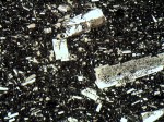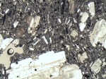 Mount Hood andesite viewed under a microscope. The lighter co